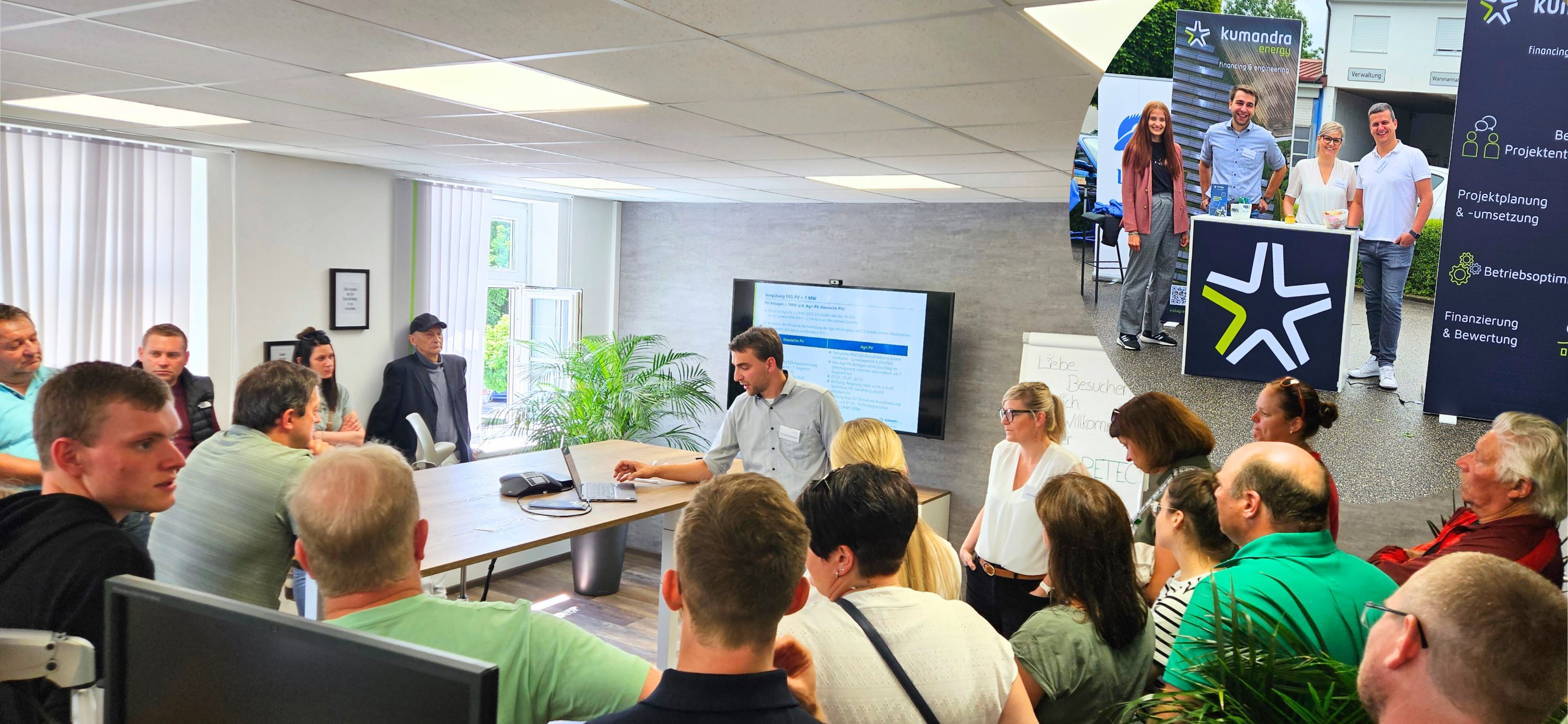 Am 16.06.2024 durften wir Kumandra Energy beim Tag der offenen Tür der Abel Gruppe vorstellen. Neben unserem Stand im Ausstellerbereich referierten wir zum Thema privilegierte PV-Vorhaben mit Fokus auf der „hofnahen Agri-PV“!